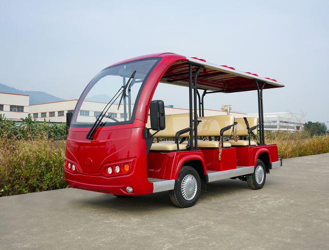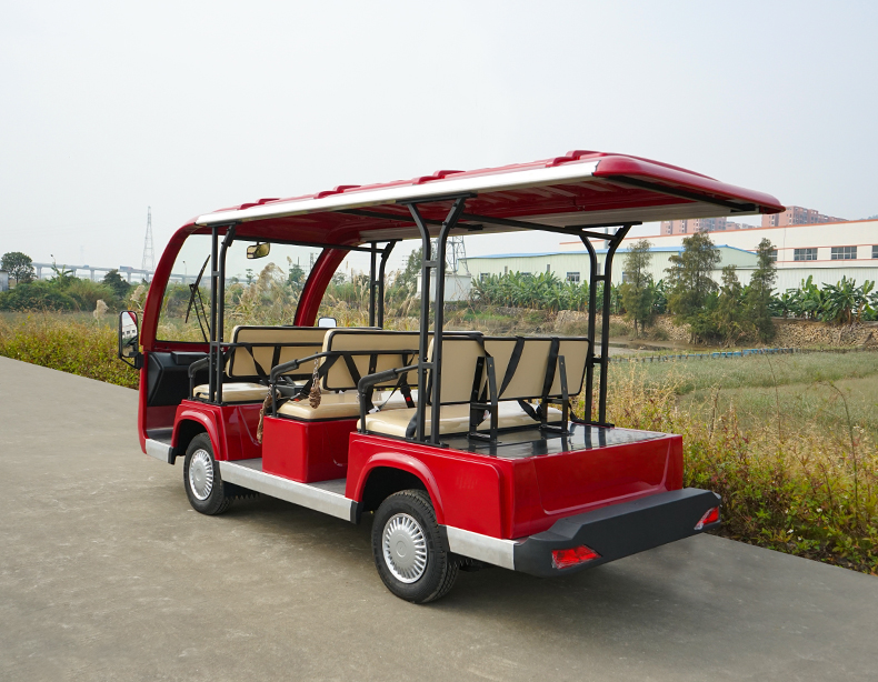 T8座紅色電動觀光車四輪電瓶車景區旅游樓盤物業看房車公園度假村酒店接待車